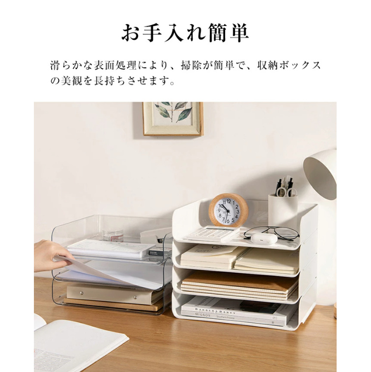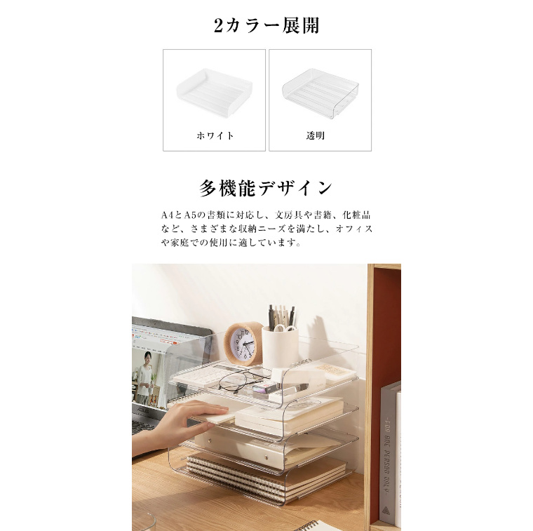 多機能デザイン:A4とA5の書類に対応し、文房具や書籍、化粧品など、さまざまな収納ニーズを満たし、オフィスや家庭での使用に適しています。