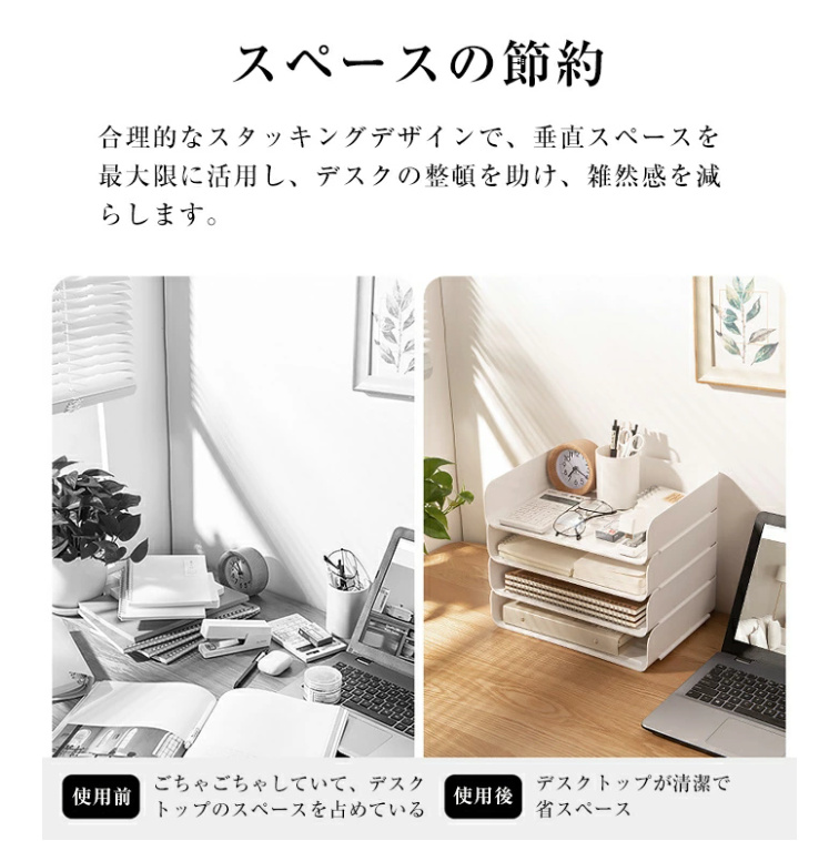 スペースの節約:合理的なスタッキングデザインで、垂直スペースを最大限に活用し、デスクの整頓を助け、雑然感を減らします。