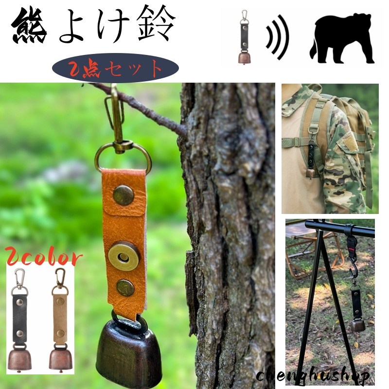 2点セット 熊よけ鈴 熊鈴 鈴 ベル 消音機能 付き 山鈴 熊ベル カラビナ PUレザー マグネット 消音 クマよけ 熊よけ 鹿 遭難対策 登山 自転車 山菜取り キャンプ