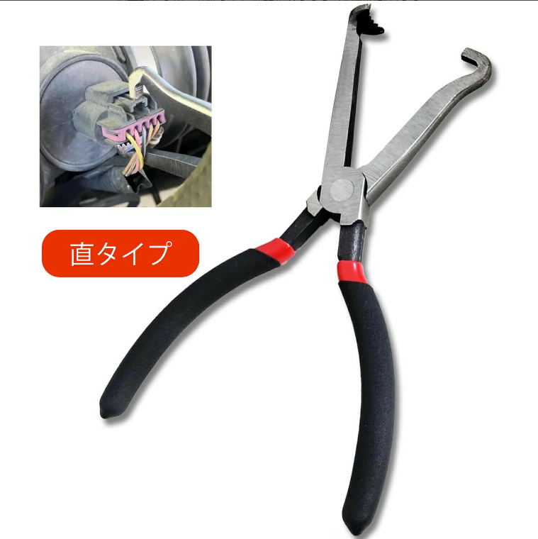 【カプラー外しの専用工具】このプライヤー型のカプラー外しツールの互い違い先端は円型の歯状なので、手やラジオペンチよりかなり楽々と、かたく固着した配線カプラーやコネクターを傷めなく外せますし、作業効率は大幅に上がります。