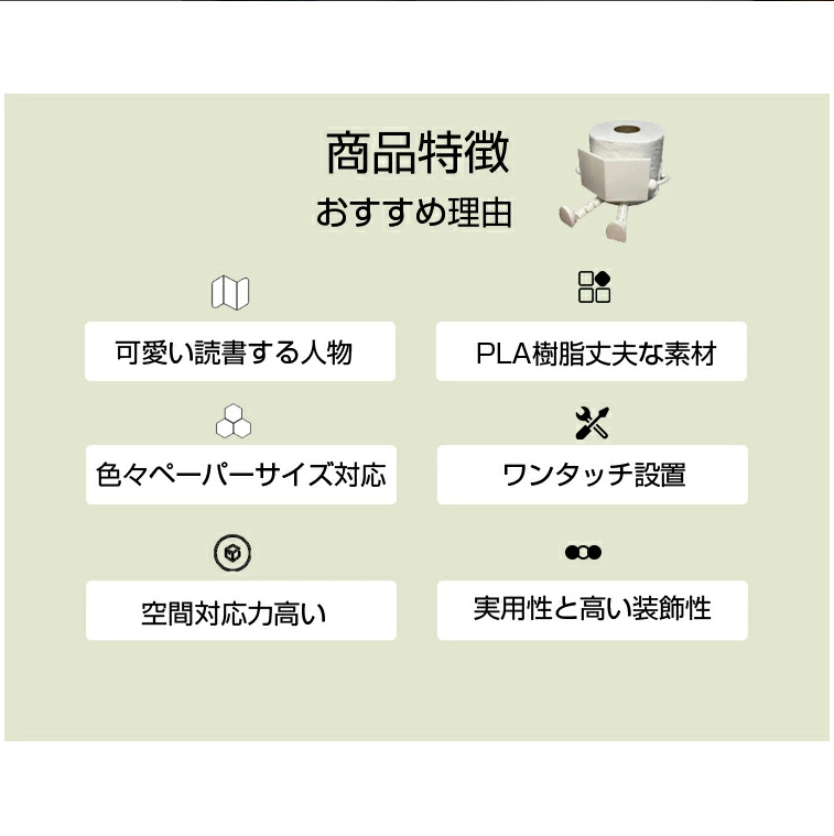 読書トイレットペーパーホルダー 自立 面白い 可愛い クリエイティブ トイレットペーパー収納ラック バスルーム リビング飾り自立 かわいい