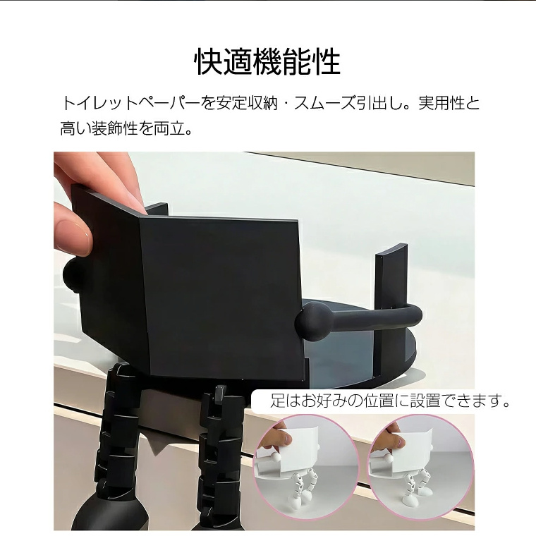 トイレットペーパーホルダーはもちろん、ティッシュボックス収納としても活用可。遊び心あるデザインが室内に彩りと話題性をプラス。