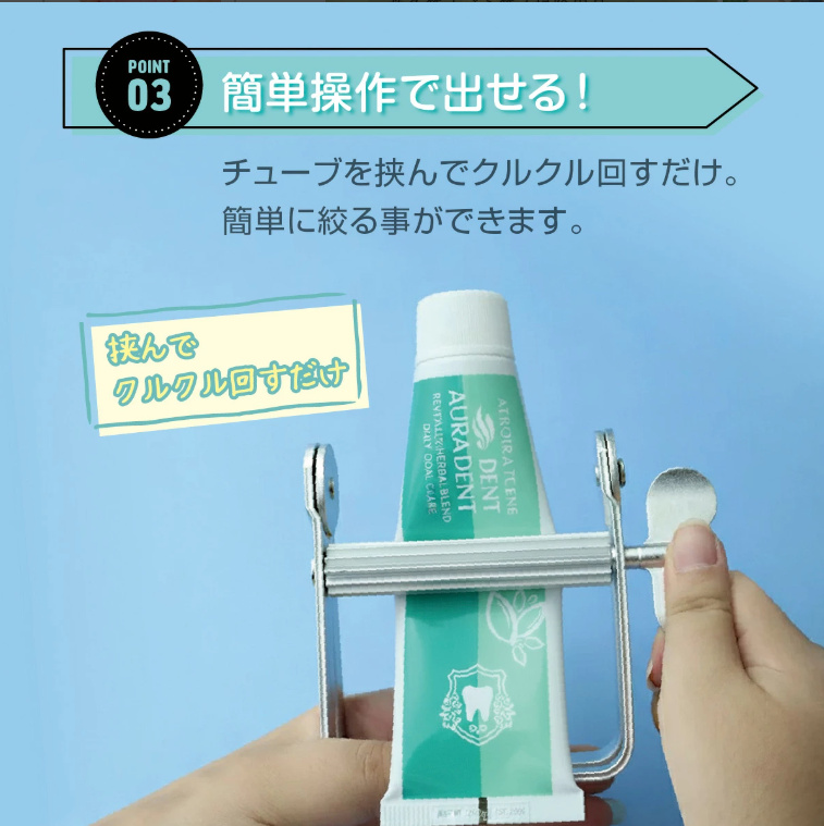 手動チューブしぼり器 金属製 アルミ合金 最後まで使い切り 回転式 歯磨きチューブ 便利グッズ