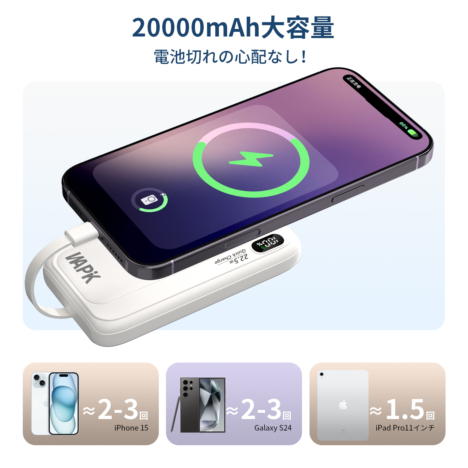 モバイルバッテリー スマホ充電器 大容量 防災電源 20000mAh 小型 急速充電器 PSE認証済 残量表示 3台同時充電 携帯充電器 iPhone/iPad/Android対応 送料無料
