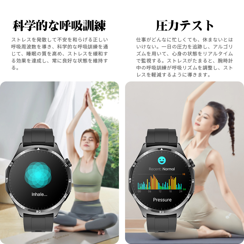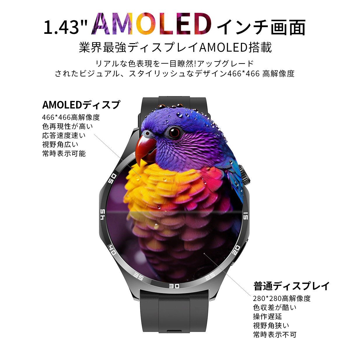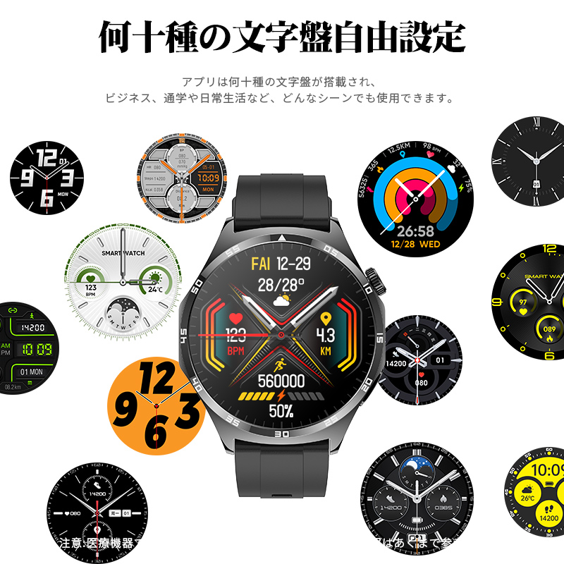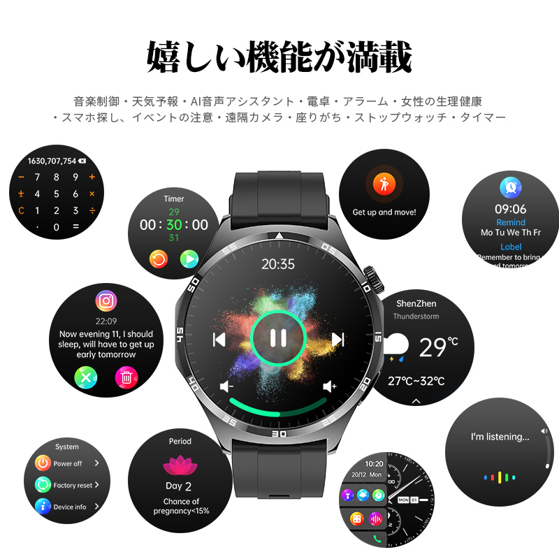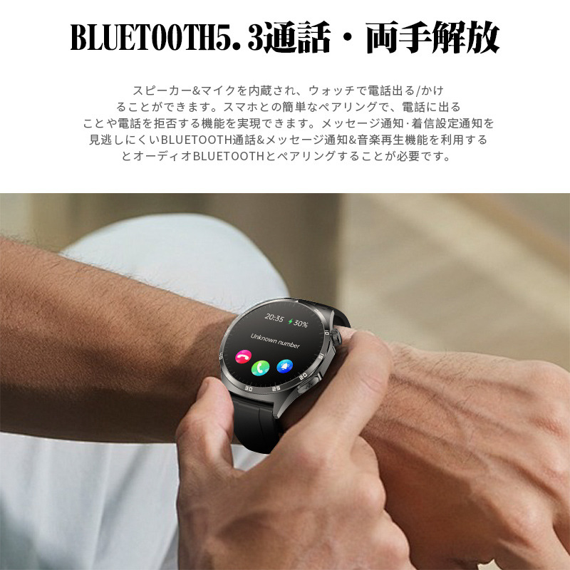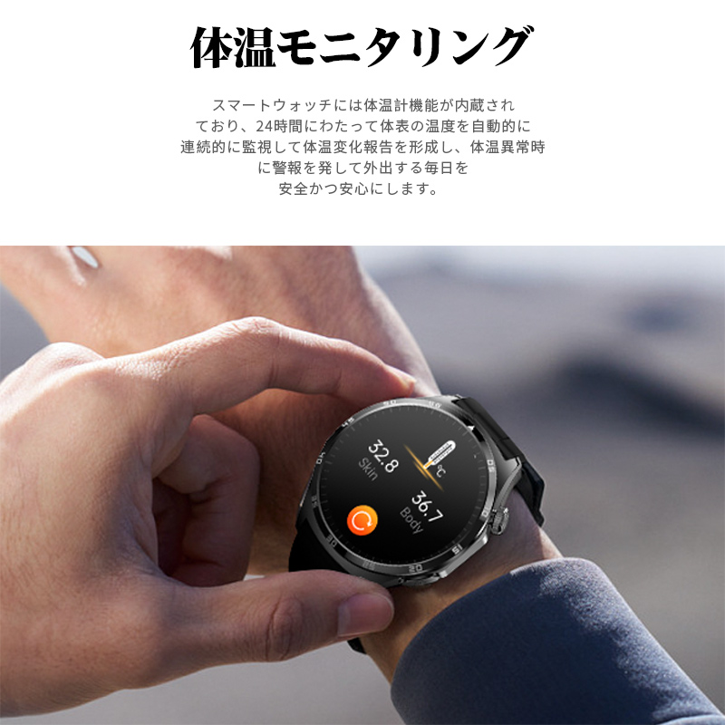 スマートウォッチ 血圧測定 通話機能 着信通知 心拍数 血中酸素 体温測定 睡眠 歩数計 運動管理 音楽・カメラ制御 IP67防水 android iPhone