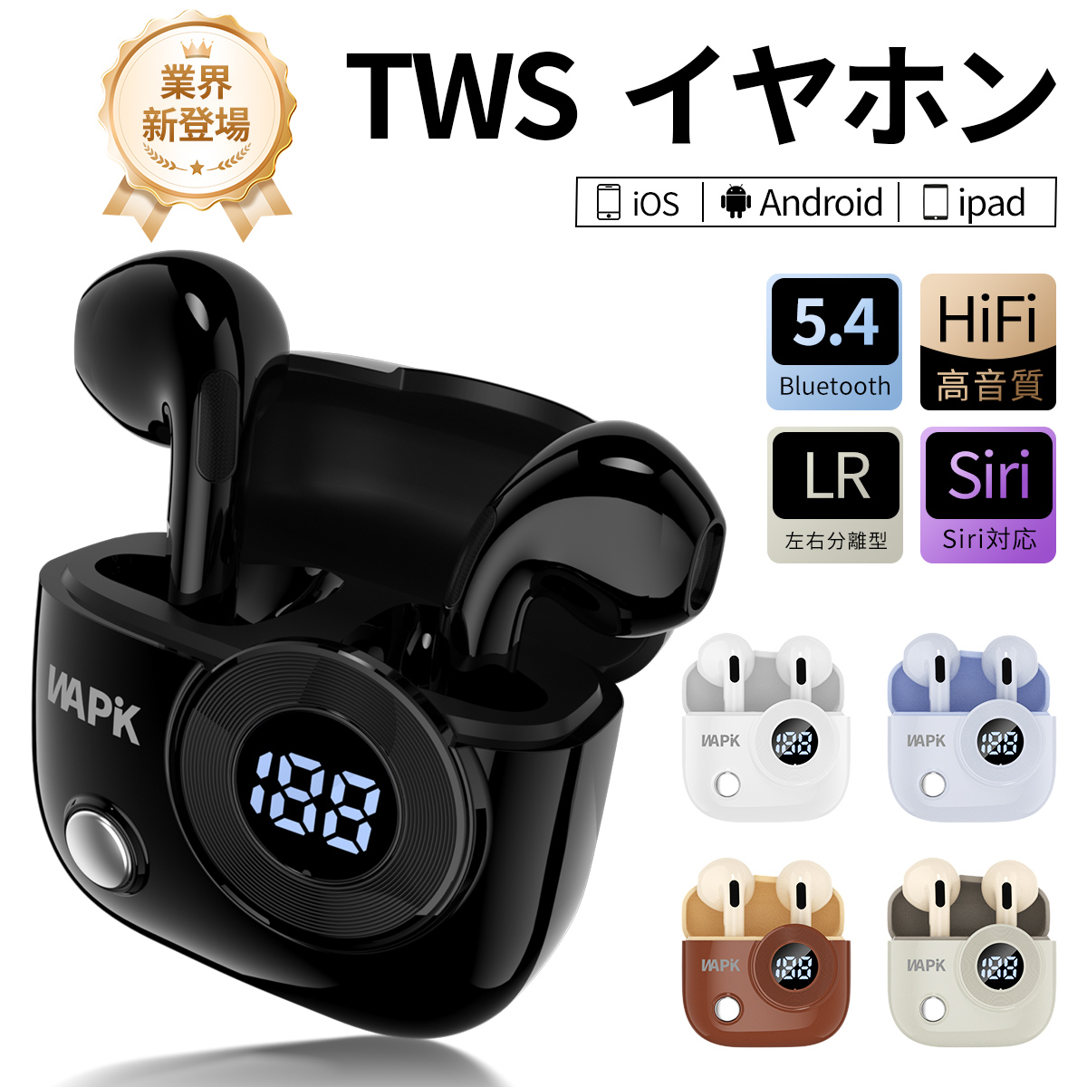 ワイヤレスイヤホン Bluetooth 5.4 通話 両耳 イヤホンマイク 自動ペア 左右分離型 残電量表示 長時間連続再生 IPX7防水 多機種対応 HiFi高音質 iPhone ipad Android siri?応 電話拒否 着信 瞬間接続 技適認証済み LEDディスプレイ 日本語説明書付 送料無料 おすすめ