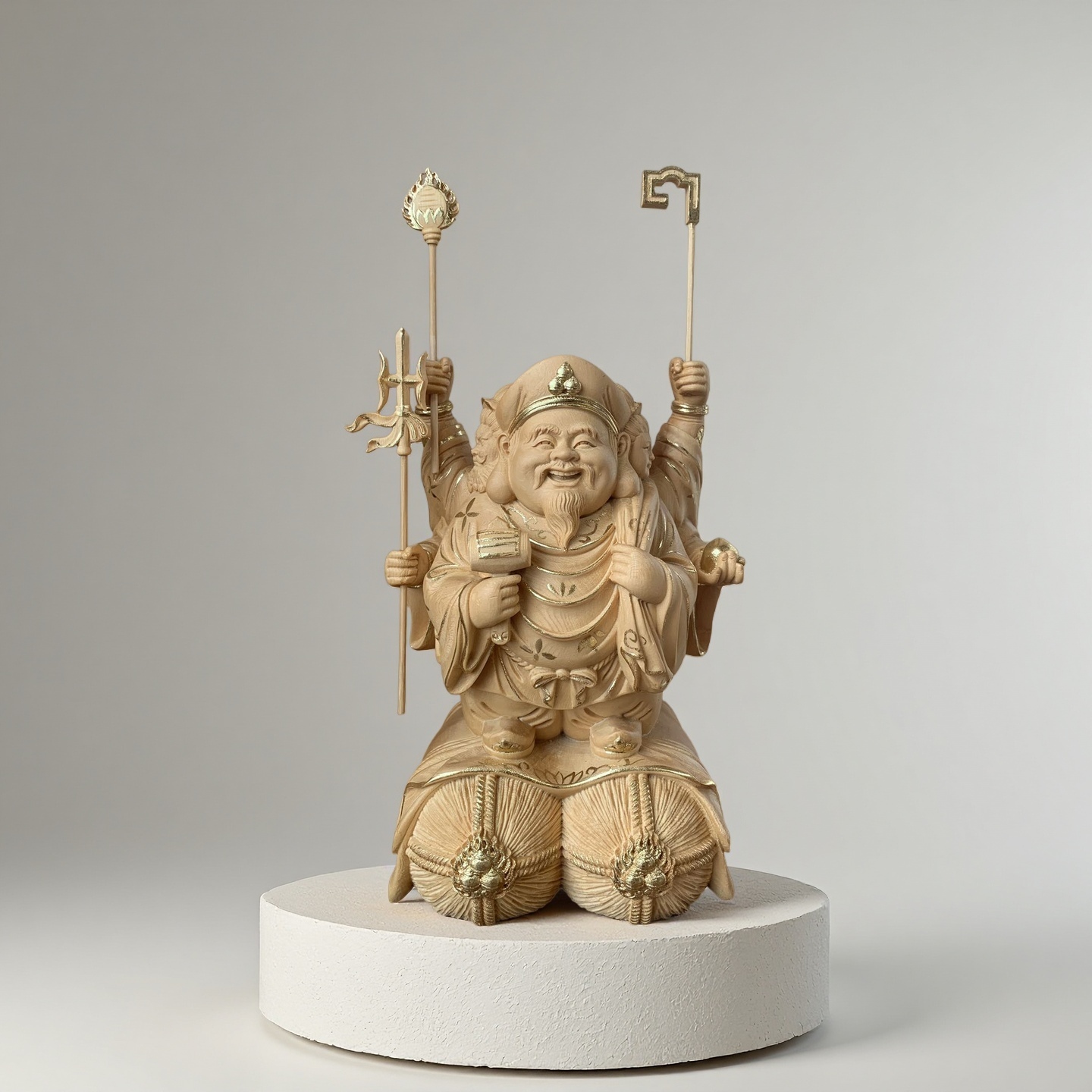 注意事項:御仏像は繊細な彫刻で造られており、破損防止の為、いくつかのパーツに分けて発送しております。大変お手数をお掛け致しますが、到着致しましたら、いくつかの組立及び飾り付けをお願い致します。