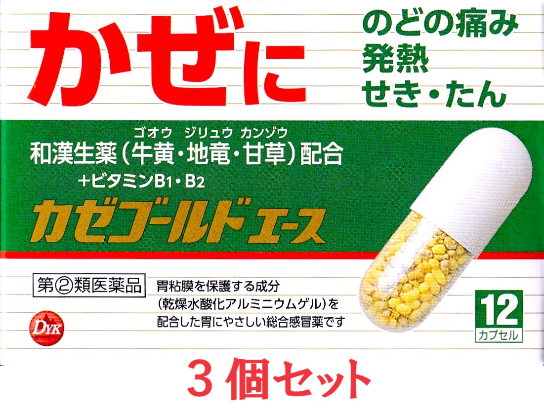 カゼゴールドエース カプセル 12カプセル 3個セット 【指定第(2)類医薬品】 選べる配送 牛黄 地竜 甘草 生薬配合 配置薬 富山の薬