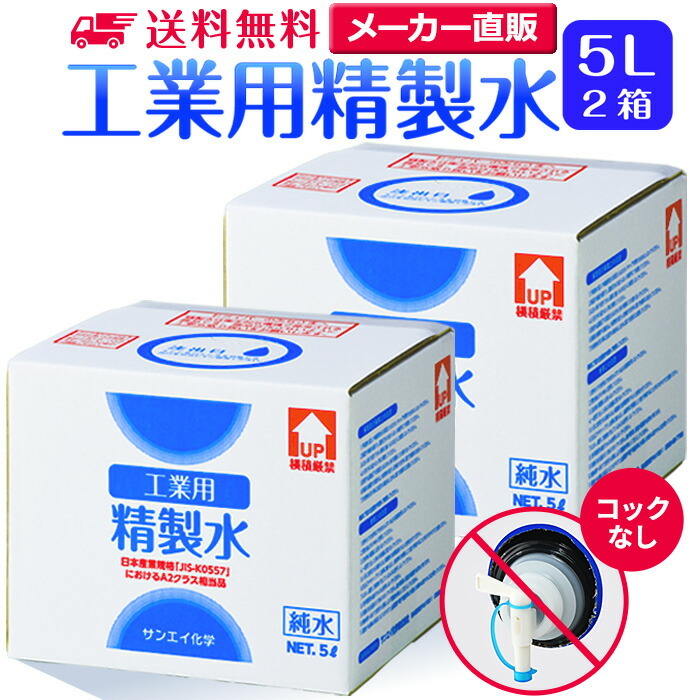 工業用精製水(せいせいすい) 5L×2箱 コックなし |