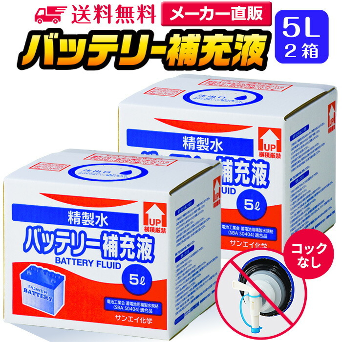 バッテリー補充液(せいせいすい) 5L×2箱 コックなし |
