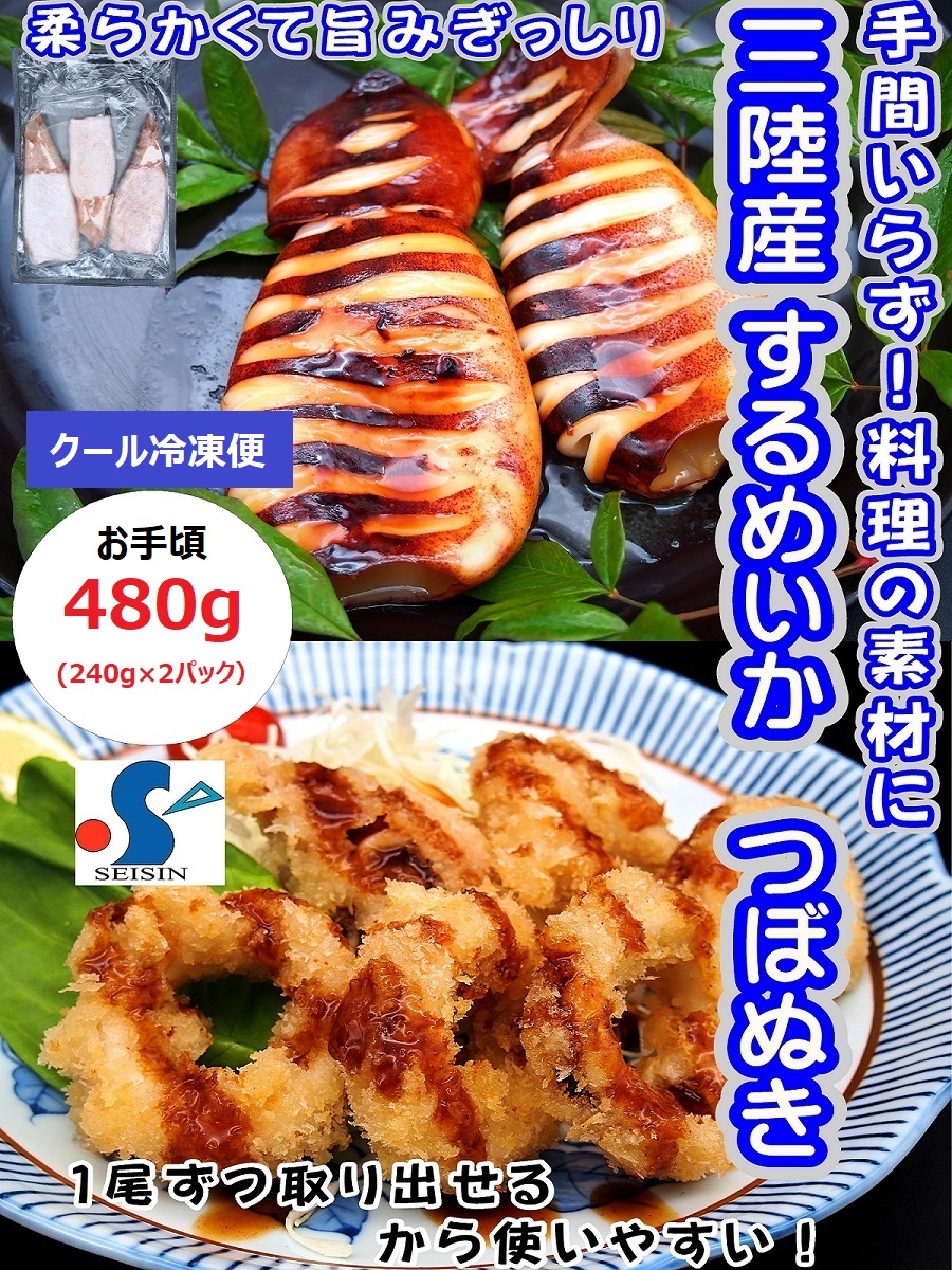 イカ スルメイカ つぼぬき 480g (240g×2パック) 冷凍 国産