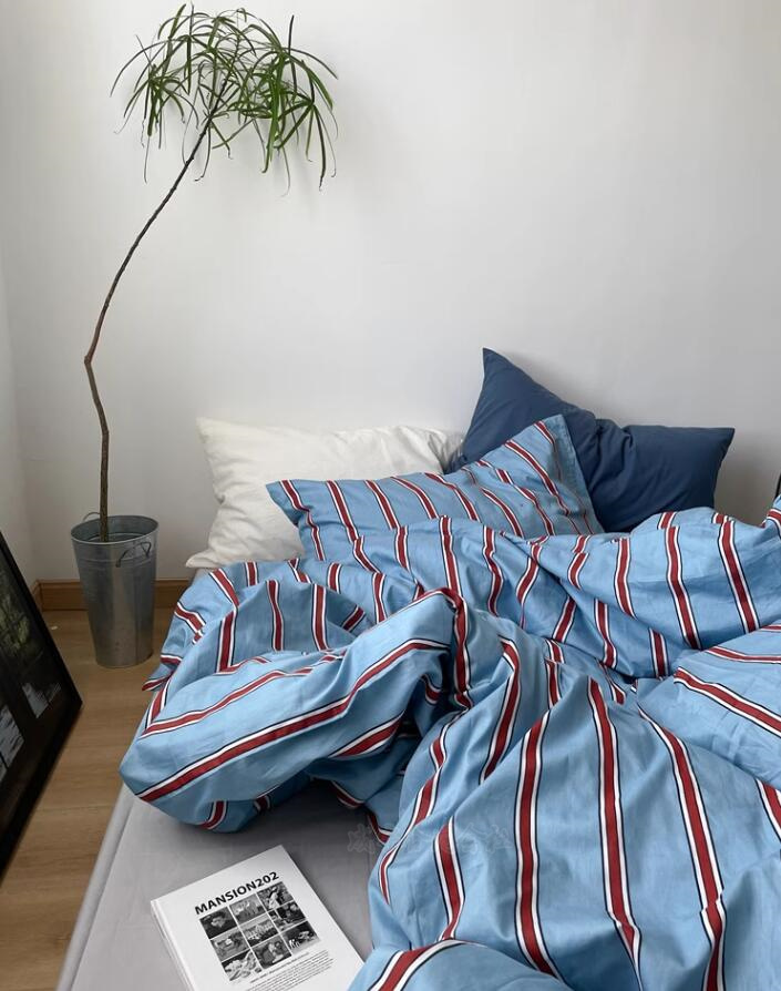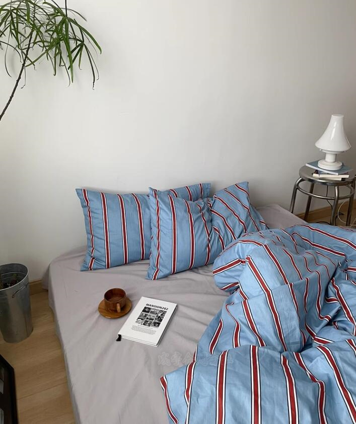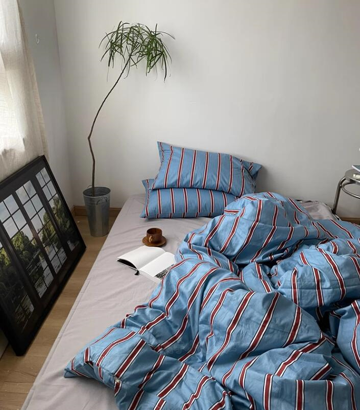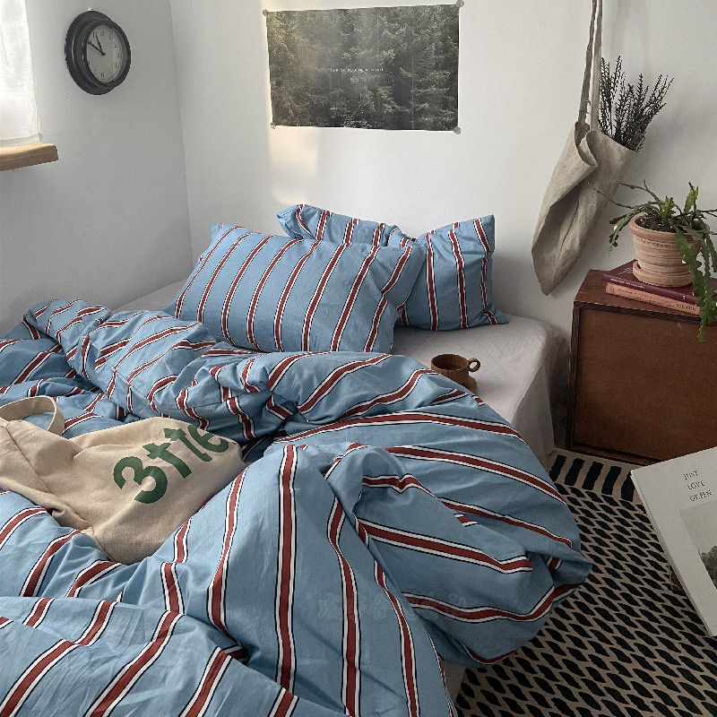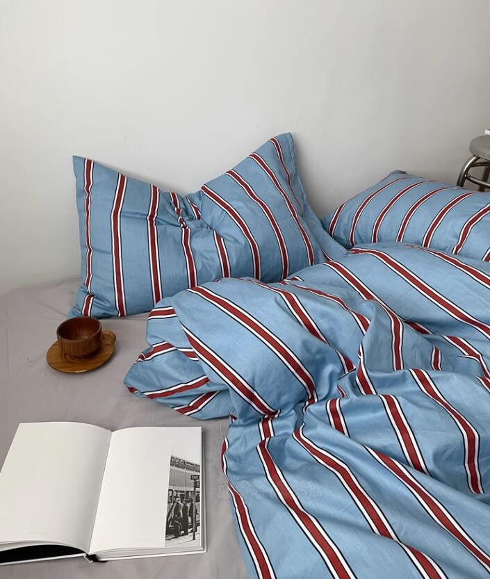 ストライプ柄 布団カバーセット ボックスシーツ/フラットシーツ 掛け布団カバー 枕カバー 寝具カバーセット 洗える 新生活 新作 四季通用 3点セット 4点セット
