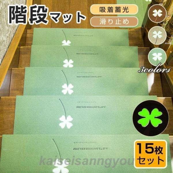 階段マット 15枚セット 蓄光 吸着マット 滑り止めマット 吸着蓄光 防音対策 洗える キズ防止 おしゃれ