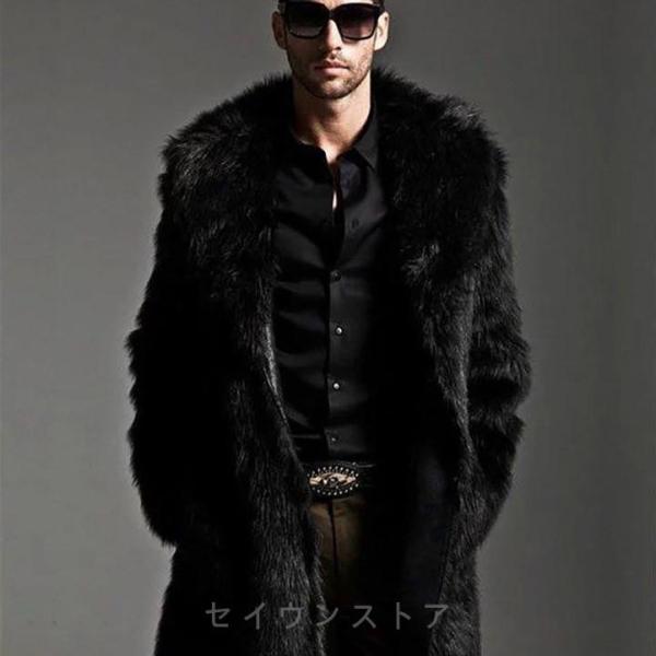 毛皮コート ファーコート メンズ アウター ロングコート ロング丈 暖かい ファー フェイクファー モコモコ 冬 防寒 かっこいい 高級感 おしゃれ