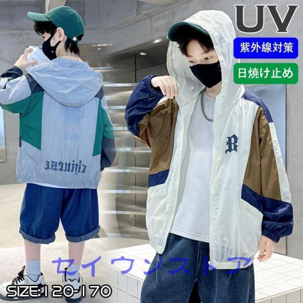 UVカット パーカー キッズ ファスナー 子供服 男の子 春夏秋 長袖 紫外線対策 日焼け防止 薄手 ジップアップ ラッシュガード 羽織り 虫よけ 冷房対応 吸汗速乾