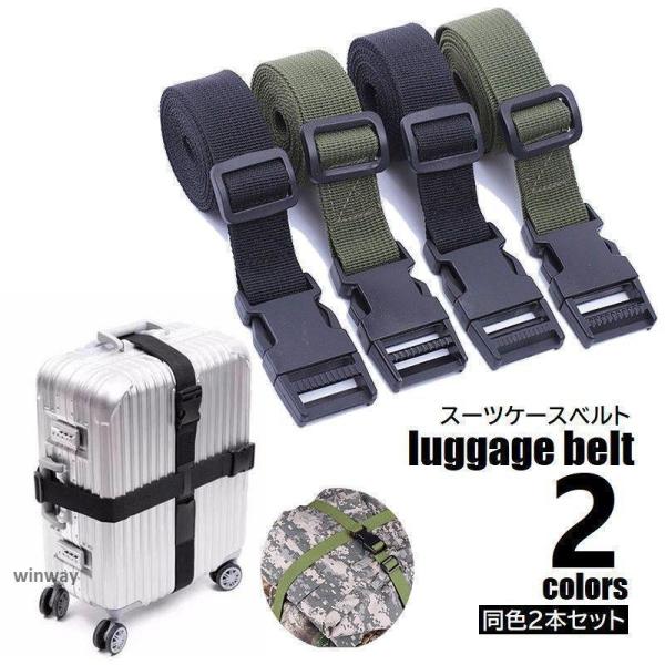 スーツケースやキャリーケースなど、衝撃による蓋の誤開き対策や、複数の荷物をまとめて固定したりと、旅行やにあると便利なラゲッジベルト、同色2本セット。