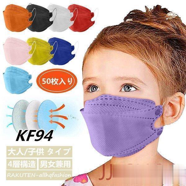 KF94 大人 子供 マスク 不織布 50枚入り 個包装 3D 立体構造 4層構造 無地 使い捨てマスク 柳葉型 口紅つきにくい メガネ曇り軽減 レディース 小顔効果