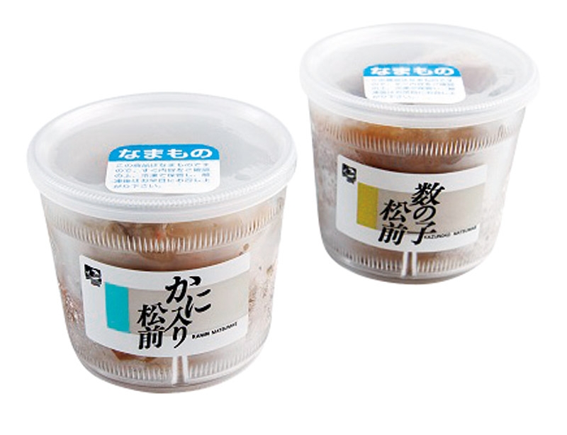 昆布とイカで仕上げた北海道の郷土料理「松前漬」に数の子を加えた「数の子松前漬」とカニを入れた「かに入松前漬け」のセットです。