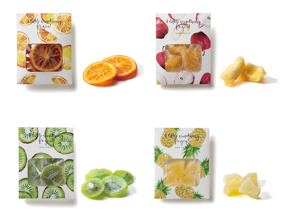 種類はオレンジ、アップル、キウイ、パインの4種類アソートです。