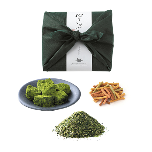 わらび餅の素×1・抹茶×1・野菜かりんとう(さつまいも・かぼちゃ・にんじん・ほうれん草・たまねぎ)20g×1・鹿児島県産 かぶせ茶ティーバッグ2g×10入り