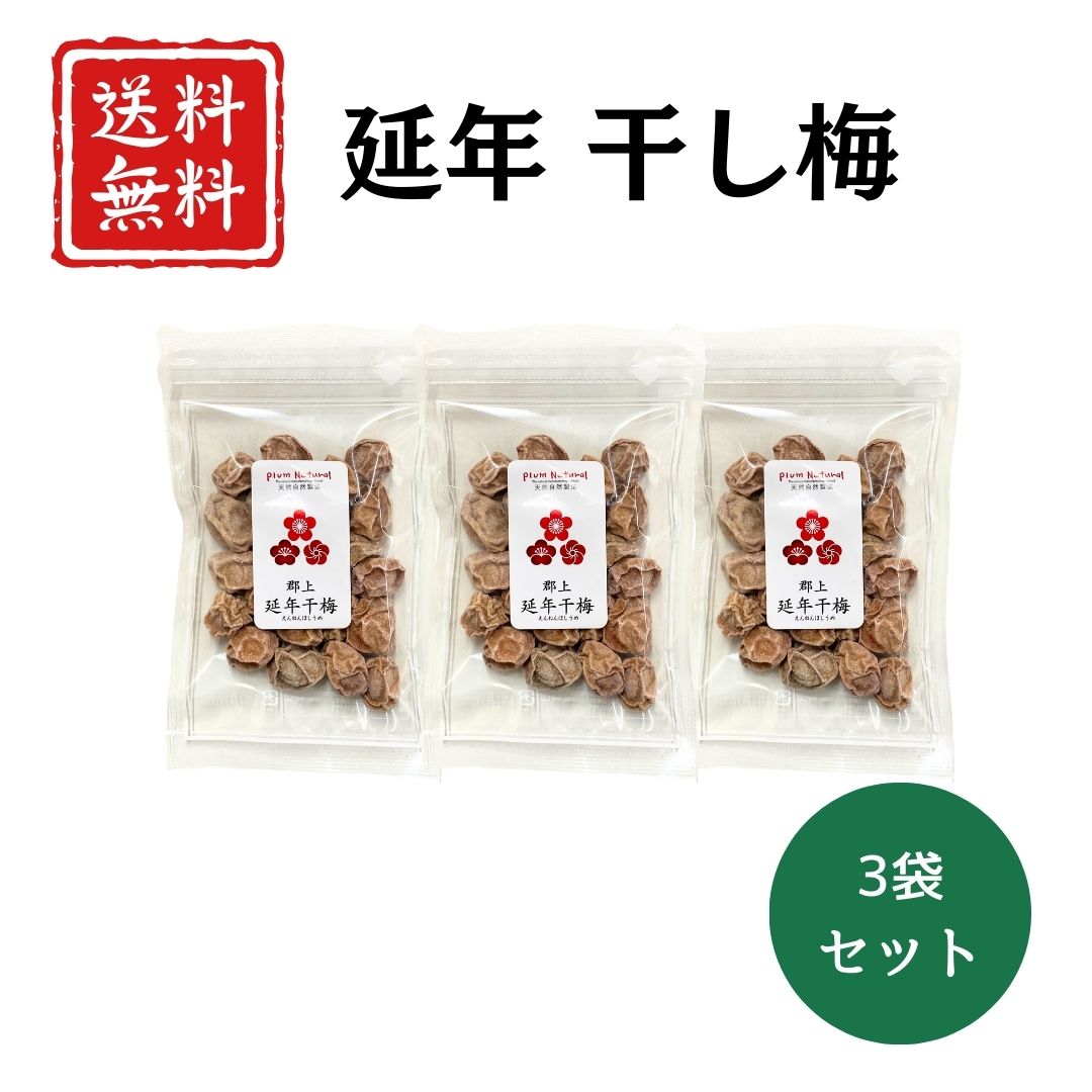 【送料無料】延年 干梅 無添加 無着色 国産 梅使用 3袋セット 昔ながらの干し梅