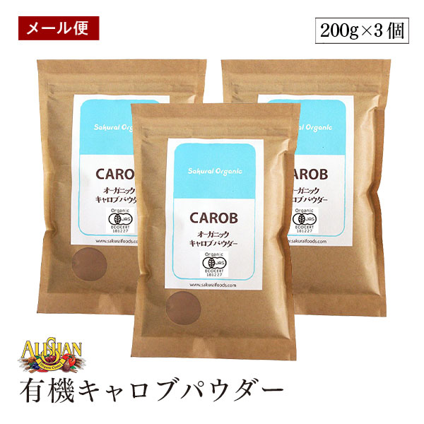 【メール便】桜井食品 有機 キャロブパウダー 200g 3袋セット オーガニック 有機JAS キャロブ パウダー いなご豆 カフェインレス チョコ代用 ココア代用 無添加