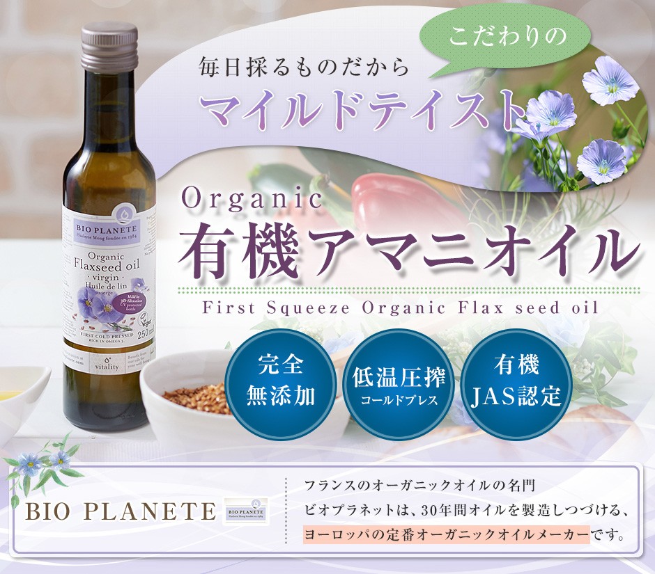フランスの名門BIOPLANETE社製造販売の有機アマニオイルです。