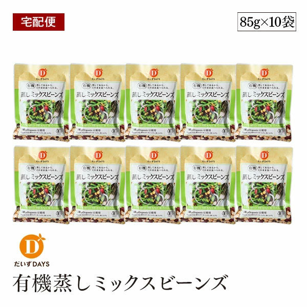 【宅配便】有機蒸しミックスビーンズ 85g 10袋セット だいずデイズ オーガニック 有機JAS 5種の有機豆をミックス 蒸し豆 ベジタリアン ビーガン マクロビ