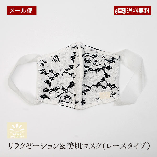 【メール便】Lotus リラクゼーション&美肌マスク レースタイプ 5色 コットン100% 血流改善 疲労回復 老化防止 二重仕立て【送料無料】