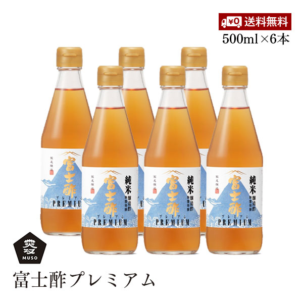 【送料無料】飯尾醸造 富士酢プレミアム 500ml 6本セット 青ラベル 調味料静置発酵法 米8倍使用 こだわりの純米酢 極上純米酢