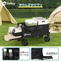 Sekey キャリーカート ワゴン 後部開閉式 長物対応 大容量185L 耐荷重150kg ベアリング搭載 大型ノーパンクタイヤ&ブレーキ付き【1年間保証】