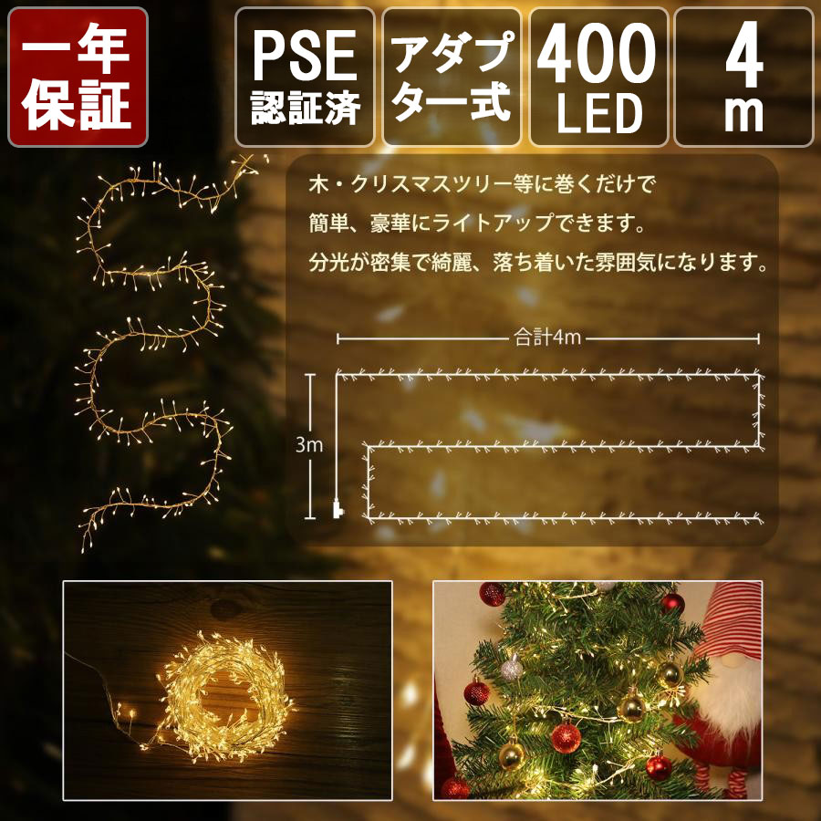 【在庫処分セール】Salcarイルミネーションライト 4m 400球 アダプター式 LED 電飾 爆竹形状 DIY可能 8点灯モード クリスマス ハロウィーン PSE認証品