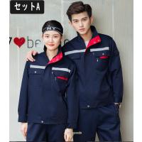 作業服 作業着 長袖 おしゃれ 上下セット ズボン メンズ レディース 女性 かっこいい 制服 事務服 丈夫 ネイビー レッド