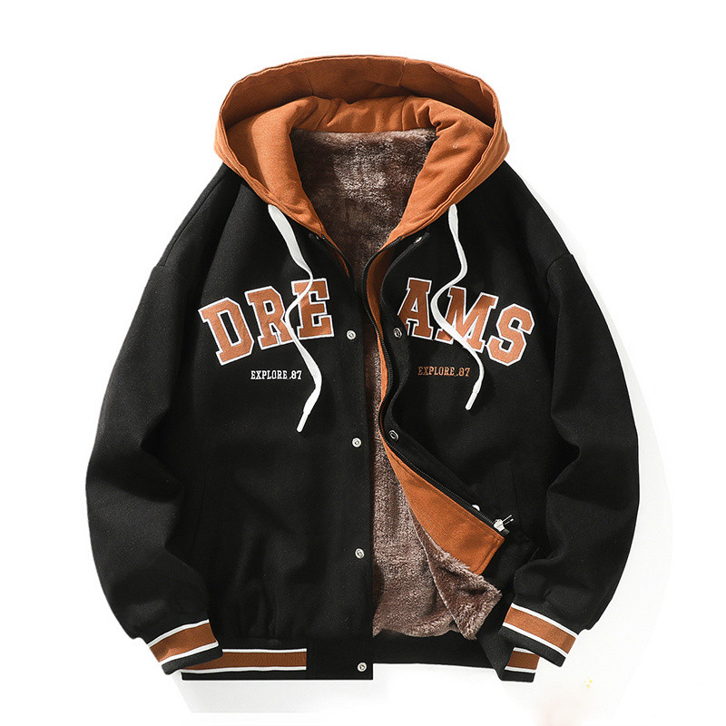 スタジャン 裏起毛 厚手 ボアブルゾン メンズ スタジアムジャケット ブルゾン アウター ビッグシルエット カジュアル ストリート フード付き アメカジ