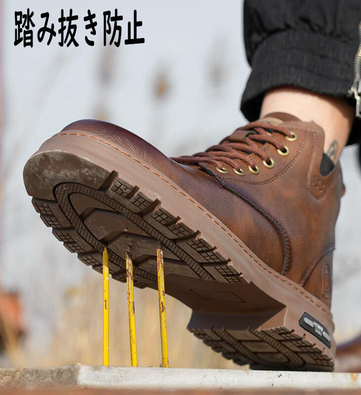 安全靴 革 ブーツ おしゃれ メンズ レディース 黒 防水 大きいサイズ 厚底 踏み抜き防止 滑りにくい つま先保護 作業靴