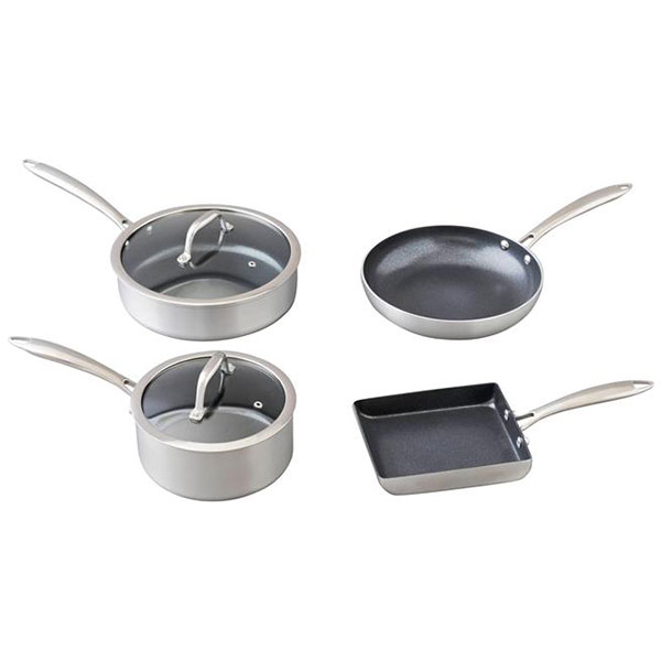 セット内容:フライパン24cm、マルチパン24cm、片手鍋18cm、エッグパン(約35.5×15.4×6.8cm)、ガラスふた18cm/24cm