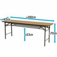 脚部折りたたみ式会議用テーブル。天板内部は軽量かつ耐荷重に優れたハニカム構造。天板は傷や汚れに強いメラミン樹脂加工。チェアに便利な高さ70cmのハイタイプ、スリムな奥行き45cmタイプ。完成品です。
