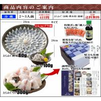 とらふぐ刺身(24cmプラ皿)80g、とらふぐ皮100g、とらふぐちり300g、ふぐポン酢100ml、もみじおろし10g×4