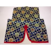 端午の節句☆金襴兜付き陣羽織飾り台付き☆菱格子花柄(白木飾り台・日の丸ハチマキ付き)☆1歳くらいのお子様が着られるサイズ(幅約40cmx高さ約45cm)
