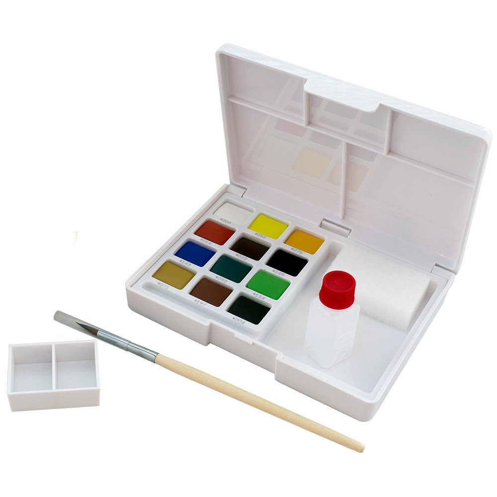 【特長1】ポケットサイズのコンパクト透明固形水彩絵の具12色セット