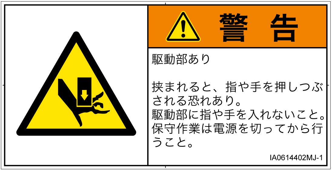 危険の種類: 機械的な危険 押しつぶし │手、指│