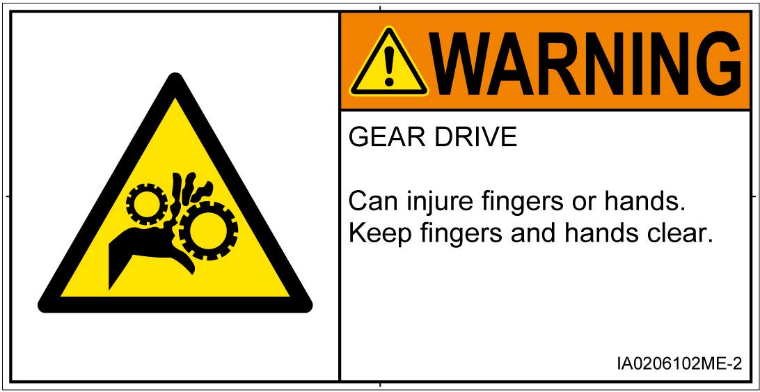 危険の種類: 機械的な危険 引き込み(ギア) │手、指│