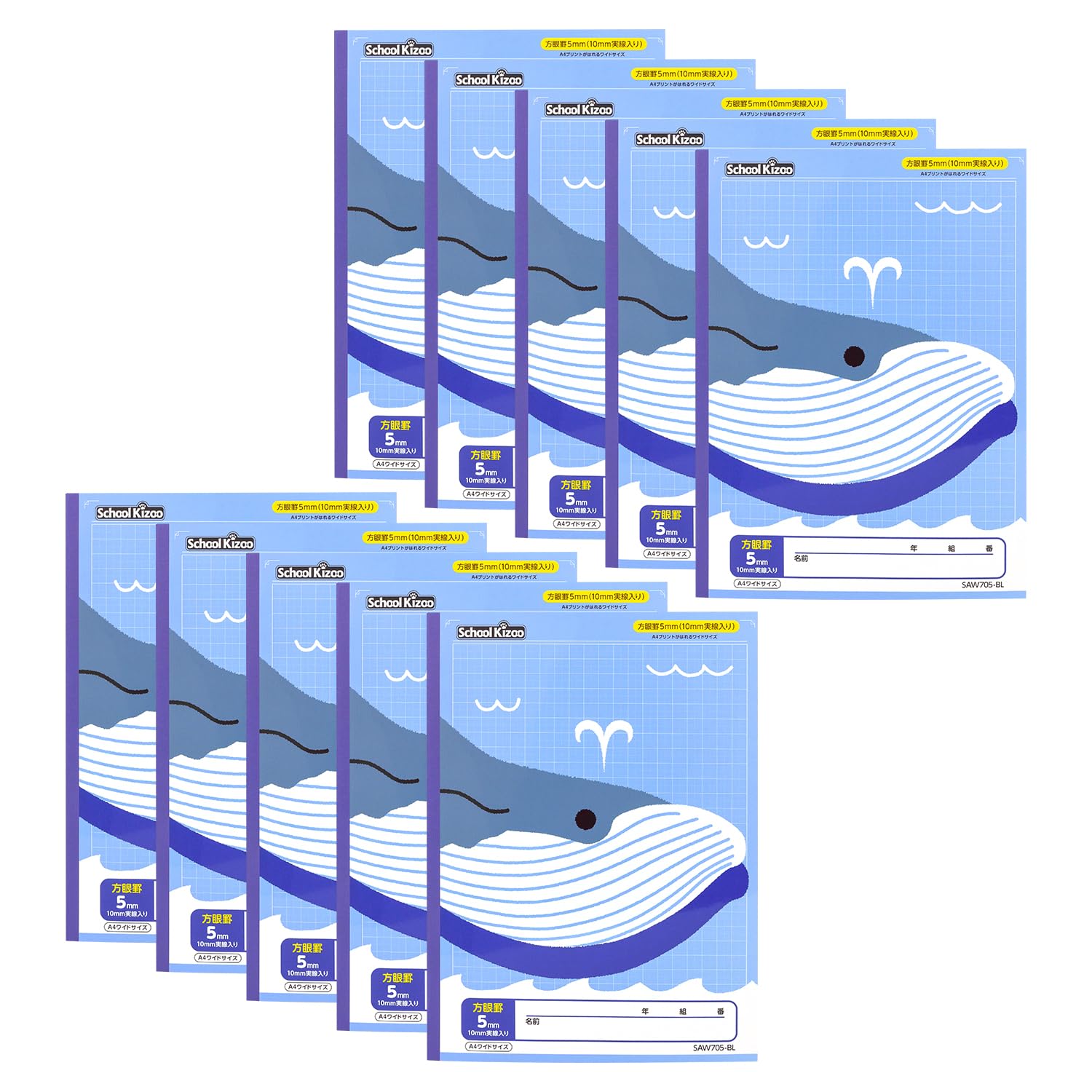 商品内容:5mm方眼 A4ワイド 青 10冊