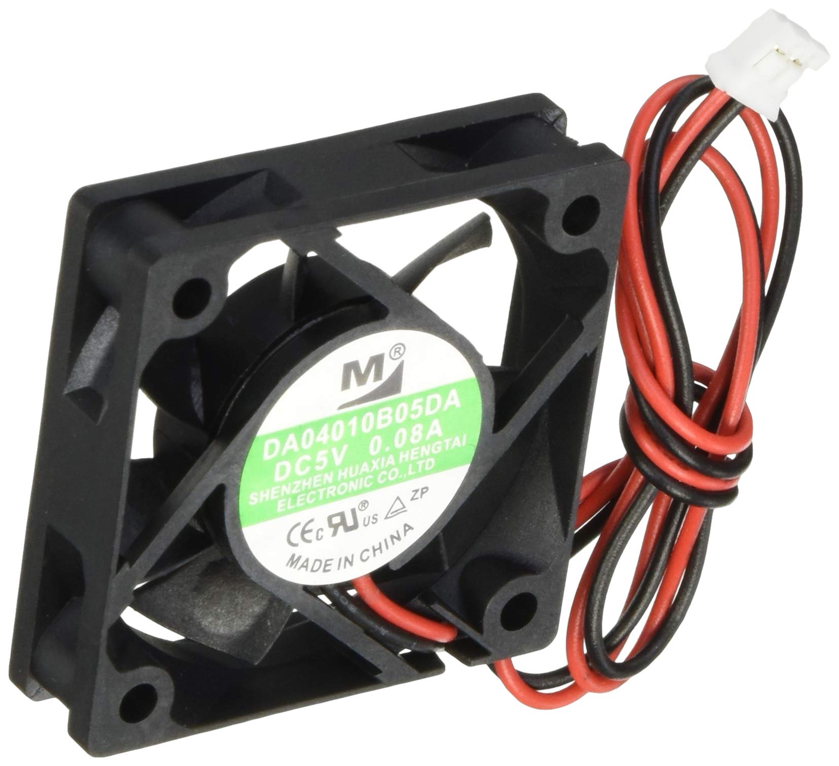 サイズ40×40×厚さ10mm。定格電圧5V。動作電圧範囲4.0〜5.5V。定格電流値0.05A、最大電流値0.08A。