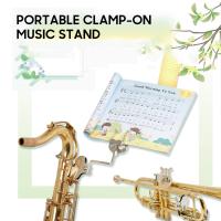 トランペット譜面台,サックス用ポータブルクランプオン譜面台テナーホーントランペット管楽器用ユニバーサルマーチングリラシートクリップホルダー