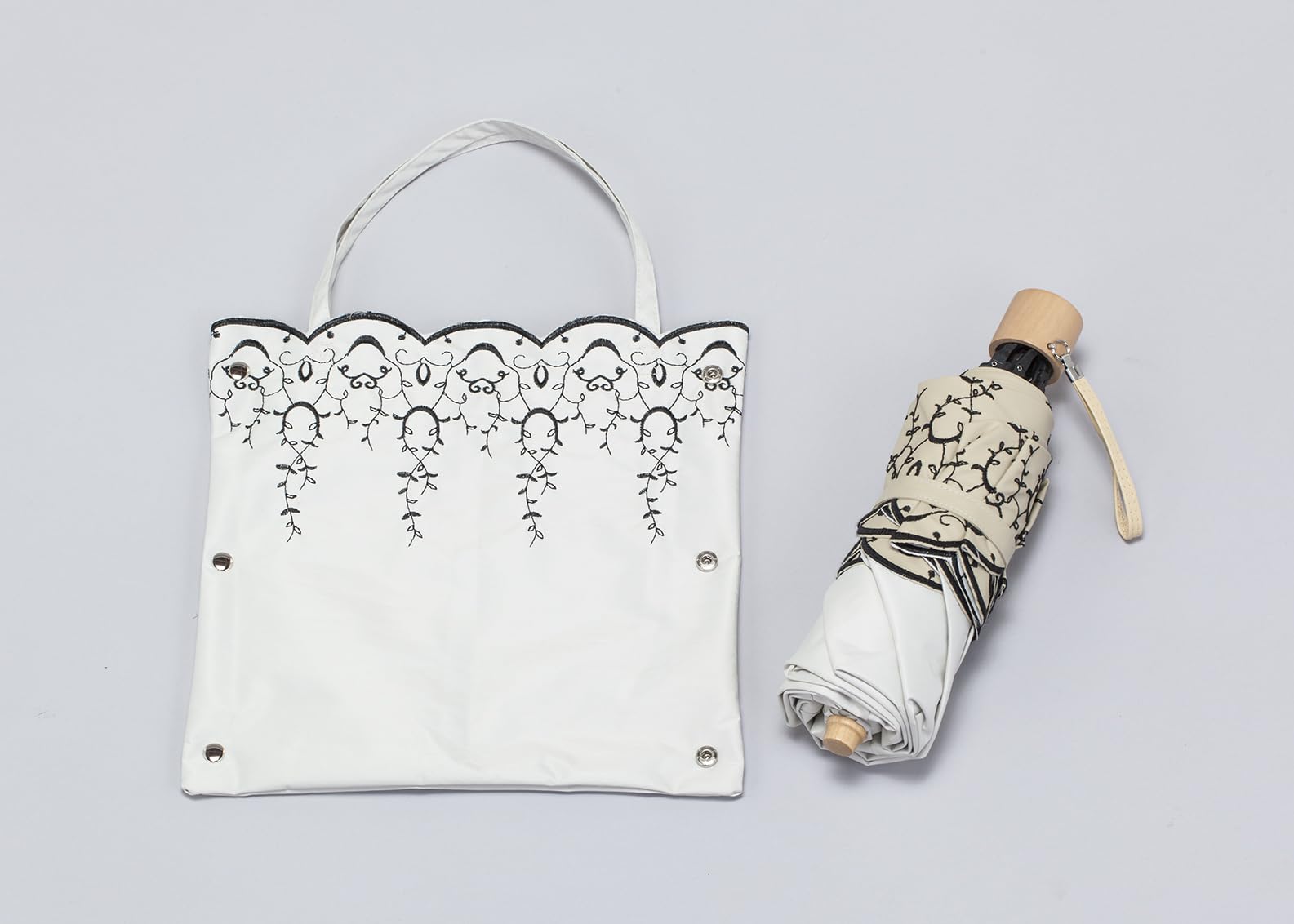 材質:傘地(本体):ポリエステル100%、傘地(刺繍上糸):レーヨン、傘地(刺繍下糸):ポリエステル、中棒:鉄、アルミ、傘骨:グラスファイバー