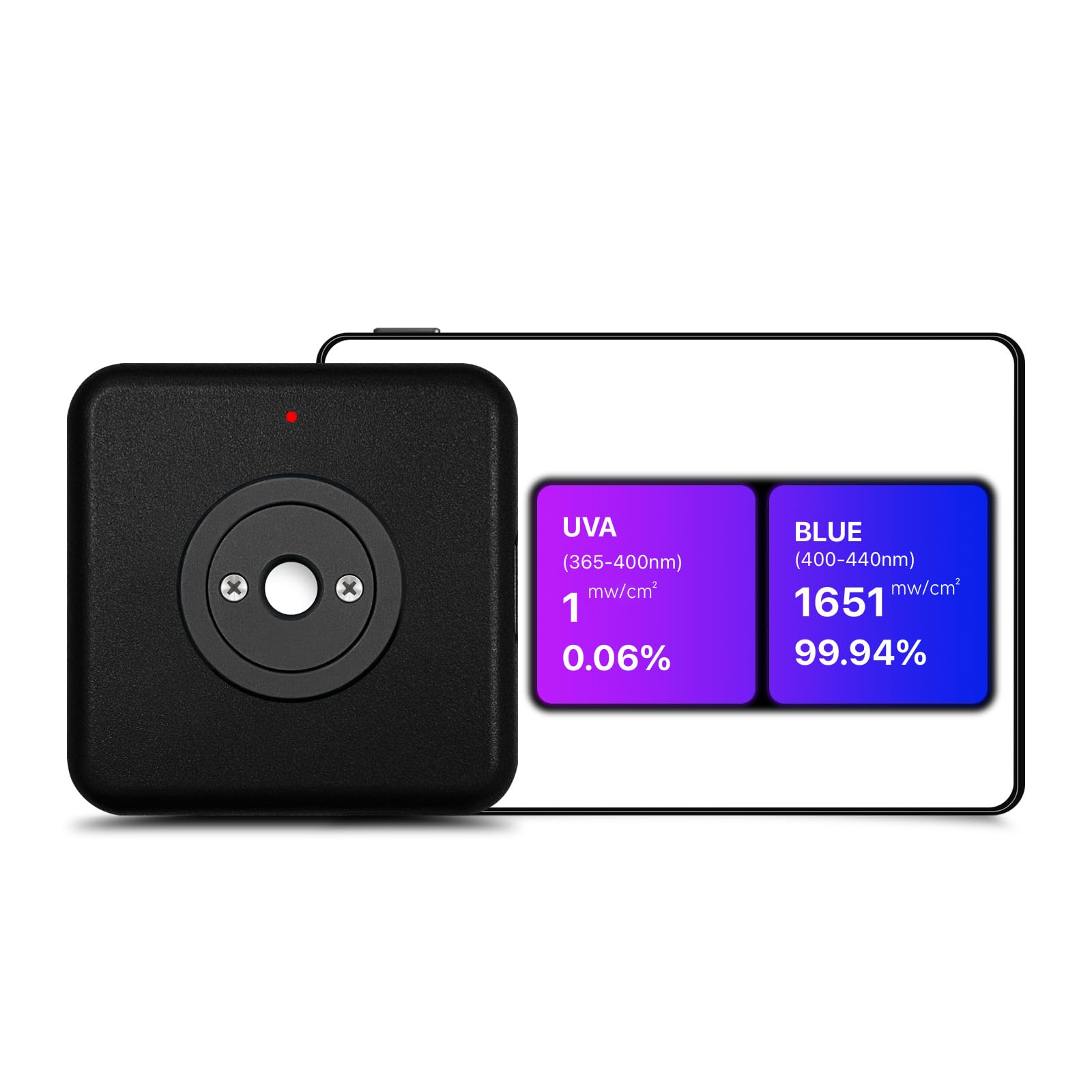 青を見せる |強い光が目を傷つけるのを防ぐための電話によるUVA放射照度。
