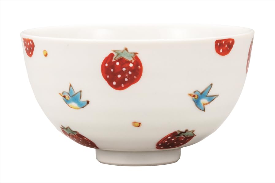商品名:ナカマル『九谷焼』飯碗・イチゴに小鳥 K9-486