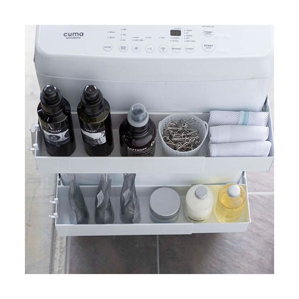 洗剤ボトルや洗濯ネットなどを洗濯機の手前に収納できるから洗濯作業がスムーズ!