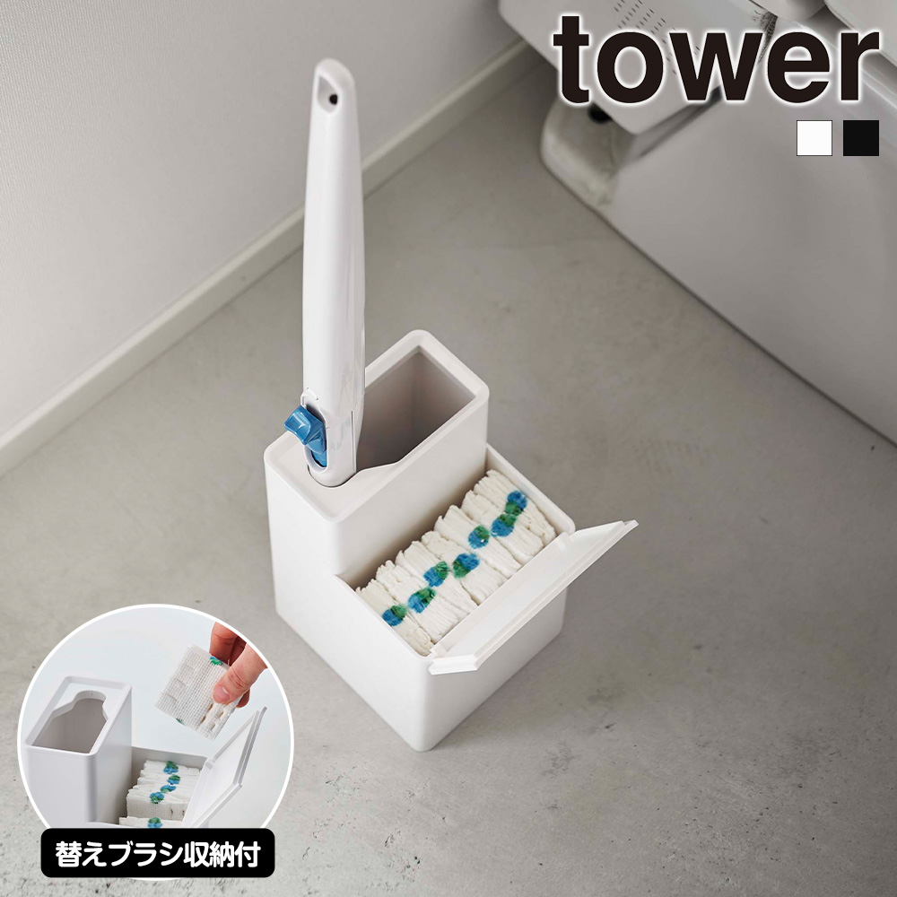 山崎実業 tower 替えブラシ収納付き 流せるトイレブラシ スタンド タワー トイレブラシ トイレ用品 トイレ収納